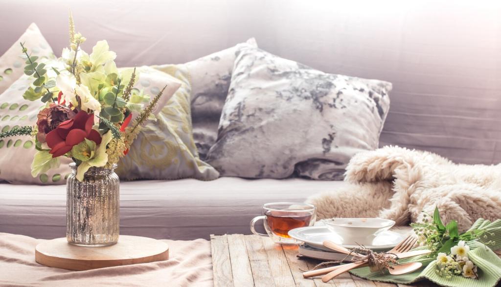 Greife zu warmen Neutraltönen wie Sand, Ocker oder Terrakotta und kombiniere sie mit sanften Akzentfarben. Ein einziger gestrichener Fokusbereich kann Atmosphäre schaffen. Hast du eine Lieblingsfarbe? Verrate sie uns und wir schlagen harmonische Ergänzungen vor.